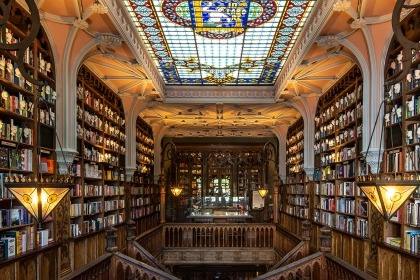 莱罗书店是波尔图的文化地标,被誉为 “全球最美书店之一”。它建于 1906 年,由莱罗兄弟创办,建筑风格融合新哥特式与新艺术风格。店内最著名的是红色旋转楼梯,相传是《哈利・波特》中霍格沃茨魔法楼梯的灵感来源。此外,彩色玻璃天窗、雕花天花板也极具特色。