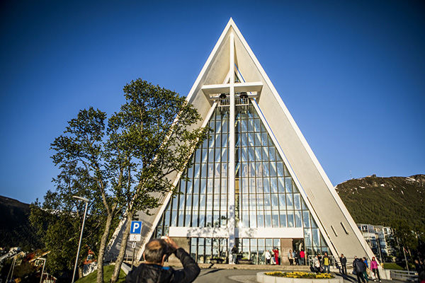 北极大教堂是特罗姆瑟的标志建筑,雪山造型,拥有北欧最大的彩色玻璃窗,建于1965年,位于市中心对面。