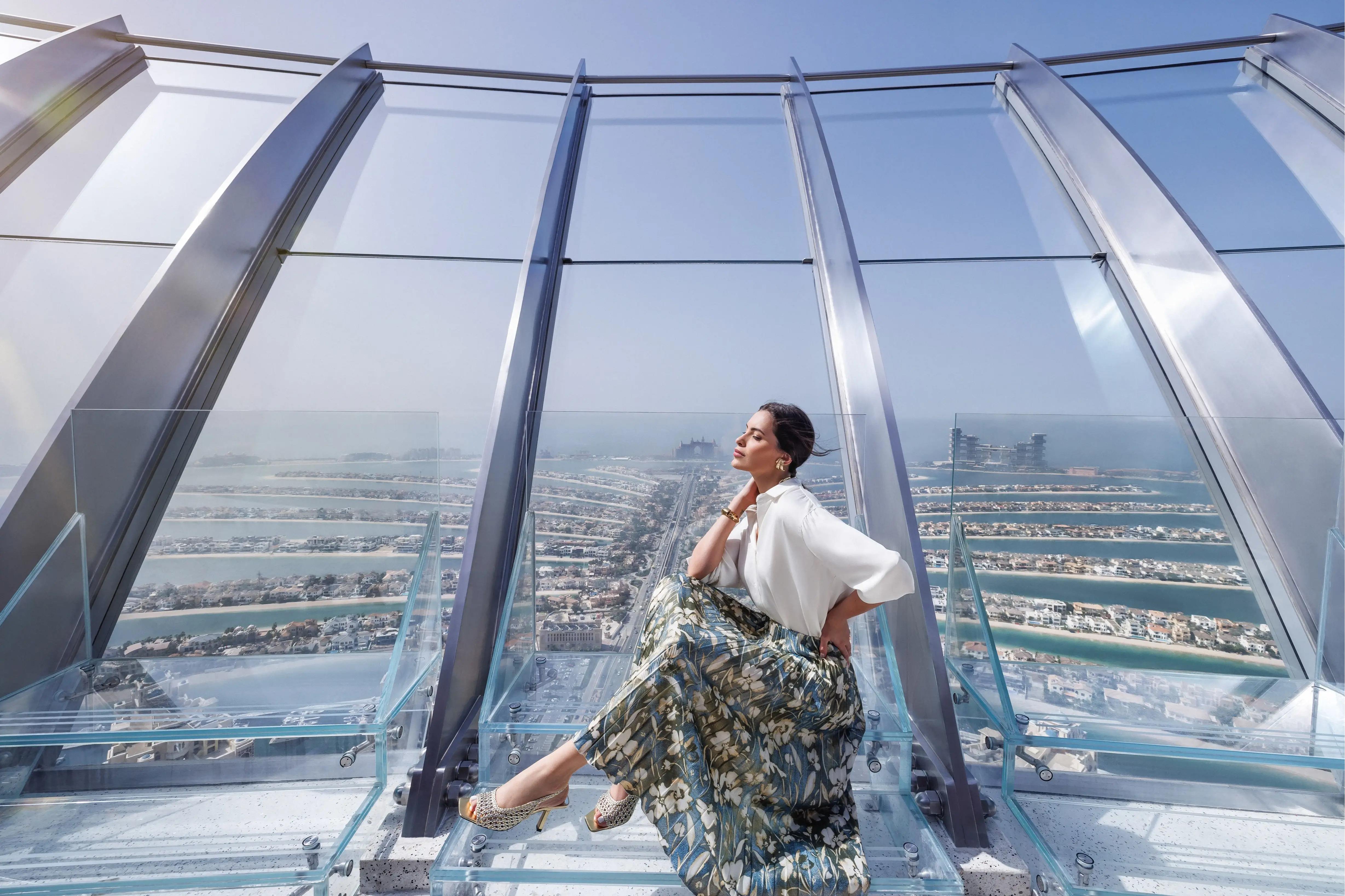 置身棕桐岛 The View,你可以欣赏到迪拜热门地标建筑勾勒出的极致美景。这座观景台高达240米,全方位呈现朱美拉棕相岛(Palmjumeirah )以及远处波光粼数的阿拉伯湾( Arabian Gulf) 和迪拜天际线交织而成的唯美画卷 棕岛 The View 位于棕桐塔(Palm Tower ) 第52层,同时设有咖啡馆、展示棕岛变迁的创意展览、互动水族馆主题通道以及一个礼品店。 2022年,随着The NextLevel 观景台的开放,游客的高空体验又上一层楼。观景台位于离地250米处,是私密的无障碍观景空间,赢得了朱美拉棕榈岛最高观景点的称号。