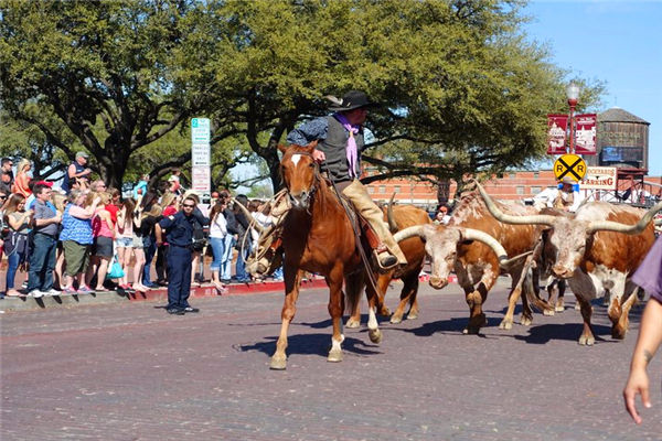1876年,铁路的到来使Fort Worth成为了牛羊牲畜运输的重要枢纽。直到上世纪60年代,Fort Worth在美国的畜牧业中仍占有重要地位。从1866年到1890,超过4百万头家畜通过Fort Worth被运输到各地,成为了著名的"Cowtown"。 为了向今天的人们真实地再现19世纪美国西部牛仔的生活,一些自愿者们仍然坚持每天赶着长角牛群从stockyard的大街穿过。