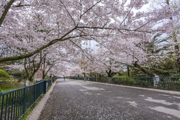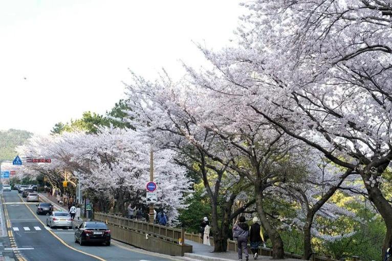 韩国最具代表性的赏樱胜地-共种植8万多棵樱花树。每逢樱花盛开的3月底至4月初为此处樱花盛开时节,粉白相间的樱花树花技招展,煞是好看,花瓣随风飘落于身侧,有如天女散花一般,给人置身仙境的幻觉。固定举行为期10余天的庆典盛会。每年军港节举行期间总是能吸引超越200万名以上海内外游客前来参加,由茂密的樱花树林形成的花之隧道,漫步在飘浮着迷人花香的清风中,并亲身感受美丽的樱花雨洒落在身上的愉悦。此外包括军乐队游行表演活动在内,现场亦有准备各式各样不同主题的活动等