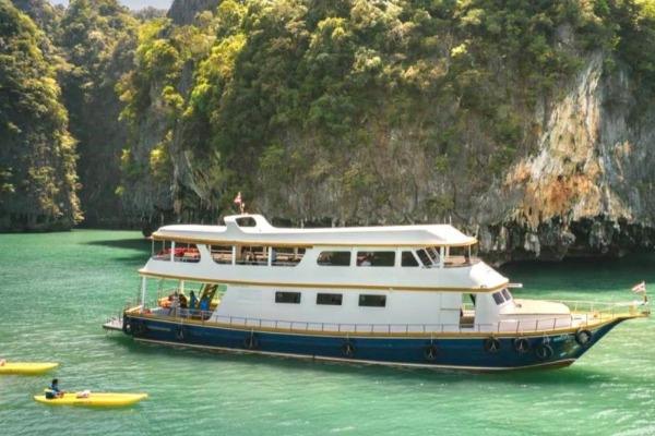 2024年11月1日开始,将扩大船程路线,让游客有机会欣赏美丽的风景:詹姆斯邦德岛(007岛) 原来的航行路线不变,但是将免费增加一条前往詹姆斯邦德岛的观光路线,在导游的带领下,享受到同样出色的体验,外加额外多游览1个岛屿! 行程叙述: 10:00-11:15 到酒店接您前往码头; 11:30-12:00 到达Ao por码头,登上现代化双引擎豪华大船,并在船上享用美味的午餐,开始今天的美好之旅; 13:00-13:15 到达詹姆斯邦德岛(007岛),大船会在007岛附近巡航,您可以在船上观光,但是不能下船; 14:00-14:30 到达帕纳克岛(Panak Island ),乘坐皮划艇,探索1-2个洞穴(第一次皮划艇大概1小时); 15:30 回到大船上,前往第2个岛屿; 16:00 乘坐皮划艇,探索1-2个洞穴(第二次皮划艇大概45分钟); 16:45 回到船上,制作水灯,自由活动,游泳、玩浆板; 17:30 享受丰盛的泰式海鲜自助日落晚餐; 18:30 登上皮划艇,进入最后一个洞穴,在这里放水灯,目睹水中银光生物。(第三次皮划艇大概45分钟) 20:20-20:30 回到Ao por码头,并送您回酒店; 21:00-21:30左右回到酒店 以上行程为参考行程,具体时间安排及浮潜点可能根据天气洋流原因略微调整且并不做提前通知,还请谅解! 温馨提示: 1、人群说明:6岁及以下免费,7-12岁按儿童,12岁以上按成人